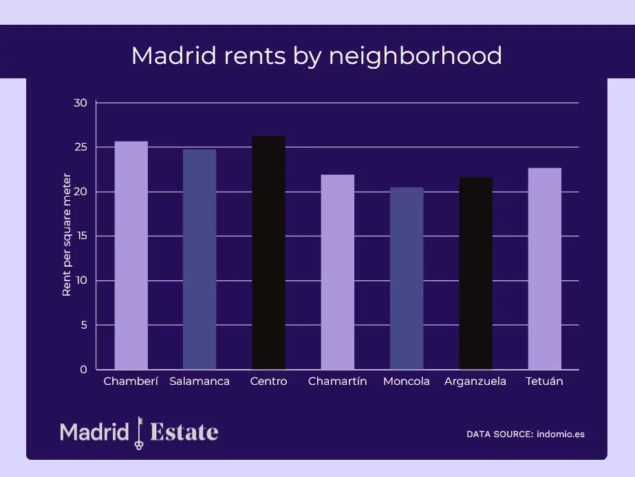 2023 saw real estate prices in Chamberí increase 6.7%; in December 2023 residential real estate in Chamberí was 6,158€ per square meter. This price increase saw it overtake Salamanca as the most expensive neighborhood in Madrid; real estate prices in Salamanca increased 4.4%. In December 2023 residential real estate prices in Salamanca were 6,125€ per square meter. This trend continued into January 2024, with Chamberí real estate prices continuing to marginally outpace those in Salamanca.