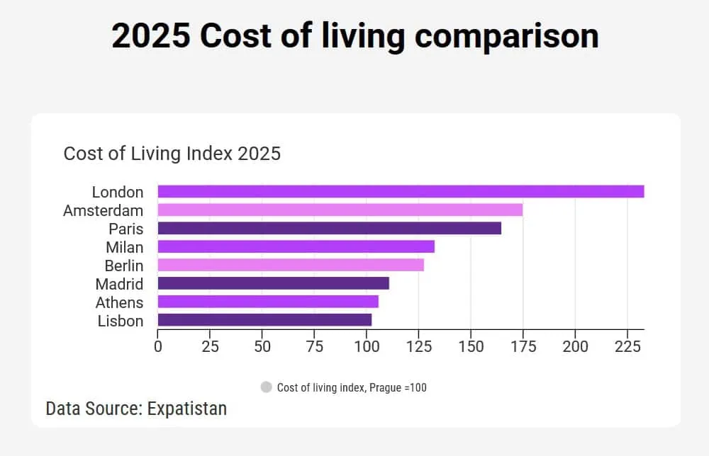 The cost of living in Madrid in 2025, versus other cities