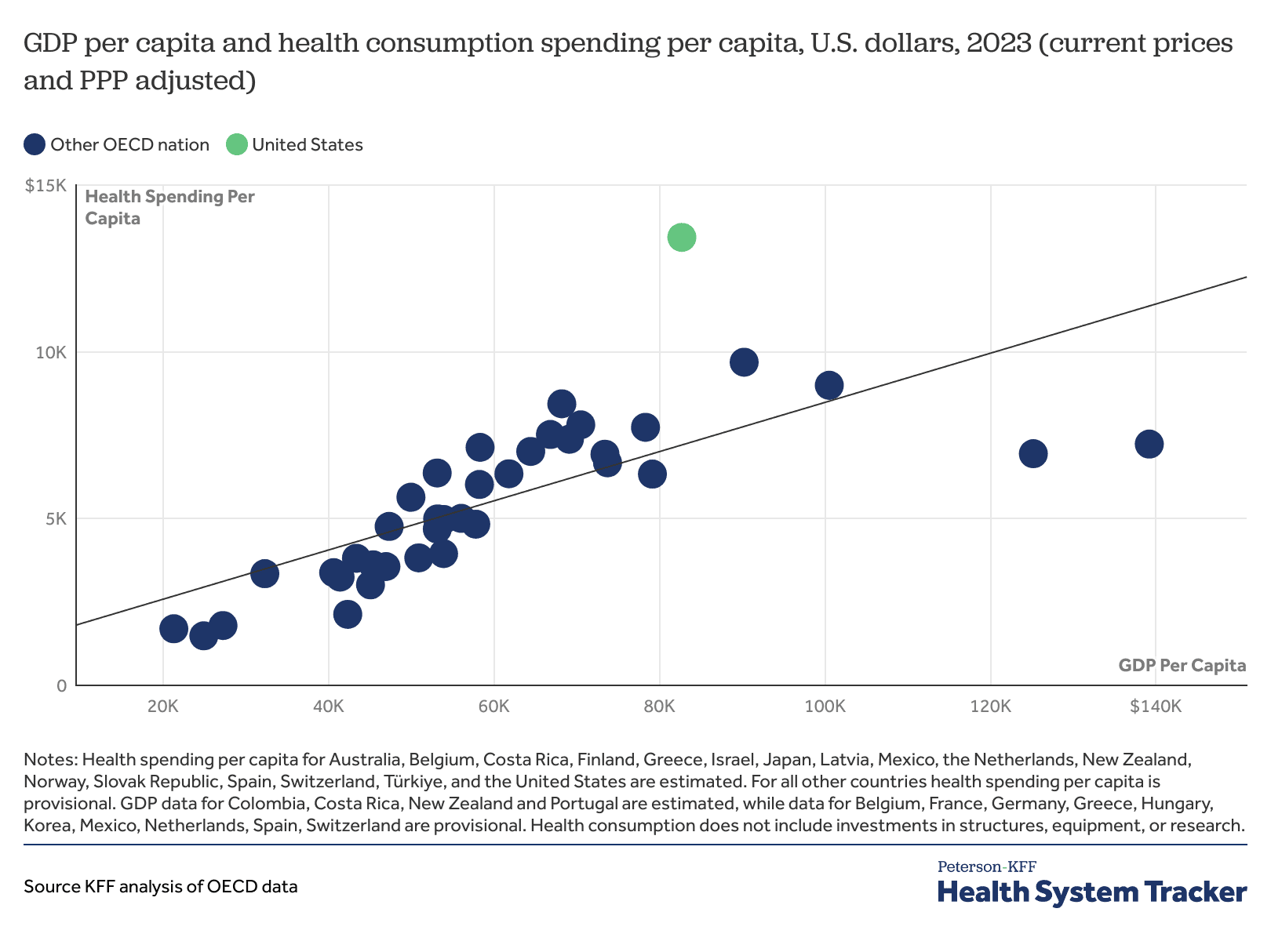 Healthcare costs in the US also vary greatly by state and one’s income; New York State has relatively high healthcare costs. Moreover, since most people that live in New York County have extremely high incomes, they pay significantly more than depicted in the above chart.