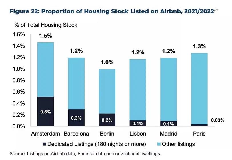 Just looking at the facts, it’s pretty easy to see that permanent rental properties make up a tiny proportion of the housing in major European cities. Prior to Madrid implementing regulations on short term rentals, only 1.2% of Madrid’s housing stock was listed on Airbnb. A mere 0.1% of these were dedicated listings, meaning they were used as short term rentals at least six months of the year. The real issue is the lack of housing supply. Spain still hasn’t seen a true rebound in new construction since the 2008 correction.