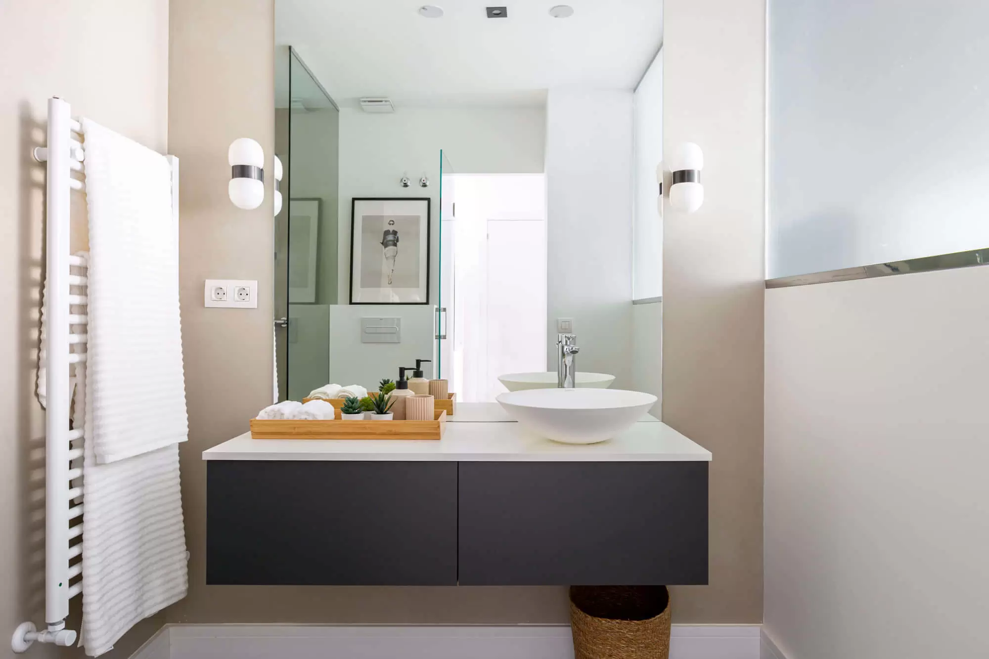 Four immaculate and stylish bedrooms accommodate up to eight guests, each bedroom can control their own tempeture and all of them have an en-suite bathroom.